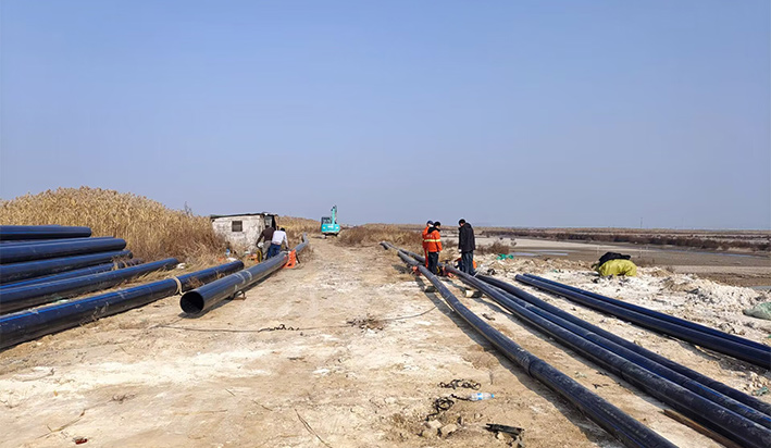 深夜10時(shí)許,一處施工現(xiàn)場,施工正酣,挖掘機(jī)轟鳴聲不斷,工人們還在加緊作業(yè),雖冬日寒意逼人,工地上仍是一派熱火朝天的景象。陸建軍、季小東等施工人員克服重重困難,破路面,挖掘管路泥土,熔接,鋪設(shè)管道,在遇到的每個(gè)困難中,都傾盡全力,擔(dān)當(dāng)作為。經(jīng)過十余天緊張施工,已完成直徑400PE管道768米、直徑200給水管道804米鋪設(shè)工作,完成工作量99%,滿足了規(guī)劃的總體要求,后續(xù)修筑檢查井也在有序進(jìn)行中。(楊維軍)