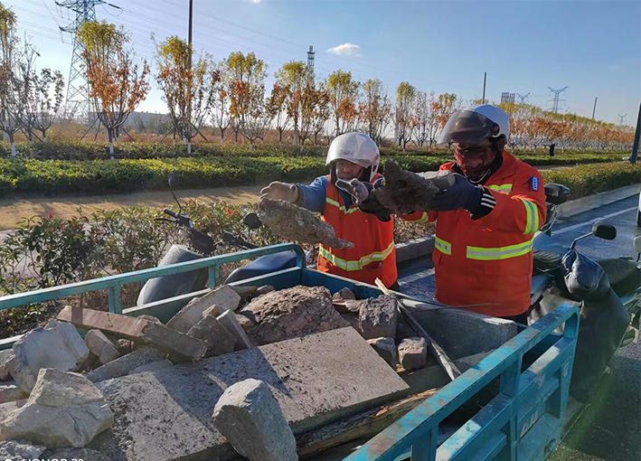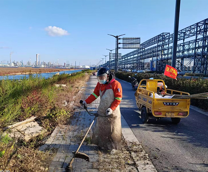 及時(shí)配合徐圩城建處理陬山路、石化七消防通道等路段施工產(chǎn)生動態(tài)各種垃圾20多車,再次轉(zhuǎn)運(yùn)陬山路主道兩側(cè)綠化帶中石塊2000多斤。針對園區(qū)建設(shè)發(fā)展情況,序時(shí)推進(jìn)石化五道,四道樣板路工程打造,組織人員突擊清理輔道雜草近1000余米長,撿拾管廊下各種垃圾300余袋。勞動現(xiàn)場,黨員生產(chǎn)骨干薛明柱、朱海勇等同志先鋒示范閃亮道路最前沿,用實(shí)際行動保障園區(qū)美麗環(huán)境。