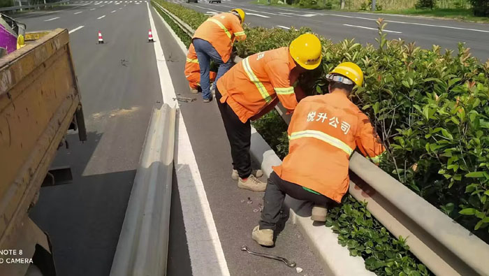 維修現(xiàn)場,道路養(yǎng)護(hù)工人正在徐新路靠近242省道處更換一處波形護(hù)欄,隊員們手持專用工具快速、高效施工,順利更換波形鋼護(hù)欄2節(jié),總長8米,及時消除了安全隱患,有效維護(hù)道路安全暢通。本次對徐新路沿線轄區(qū)波形護(hù)欄搶修,嚴(yán)格按照城建部門要求,對中斷的道路護(hù)欄要求維修人員及時進(jìn)行給予補(bǔ)接,對個別出現(xiàn)嚴(yán)重?fù)p壞的護(hù)欄進(jìn)行拆除換新。此次共完成徐新路沿線4處地段波形護(hù)欄更換工作。更換護(hù)欄8節(jié),32米。達(dá)到道路設(shè)施齊全、安全、美觀目的。(楊維軍)