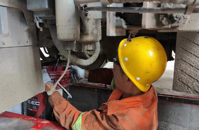 ? ? ? ?入夏以來,保養(yǎng)和維修的環(huán)衛(wèi)車輛較平時都有所增加,給維修班組增加了不小的壓力,大家整天都處于“戰(zhàn)斗”狀態(tài)。高峰時期,一天進(jìn)車間維修保養(yǎng)的大、小車輛達(dá)8臺。在一處維修現(xiàn)場,班長丁寶清與維修工陳寬軍正在貓著腰,歪著頭,對清掃車油濾部件進(jìn)行檢修、更換,高溫天氣,維修車輛對工人身體素質(zhì)確實是一種嚴(yán)峻的考驗,不一會兒,丁寶清額頭上冒出的汗珠沿著臉頰、下巴往下滴,他抹了抹,手上油漬和污垢在臉上留下了一道道黑痕,他們用實際行動詮釋著愛崗敬業(yè)的真諦。經(jīng)過1個多小時的兩人默契配合,順利完成此次保養(yǎng)任務(wù)。休息片刻,又投入到新一輪的車輛檢修中 。