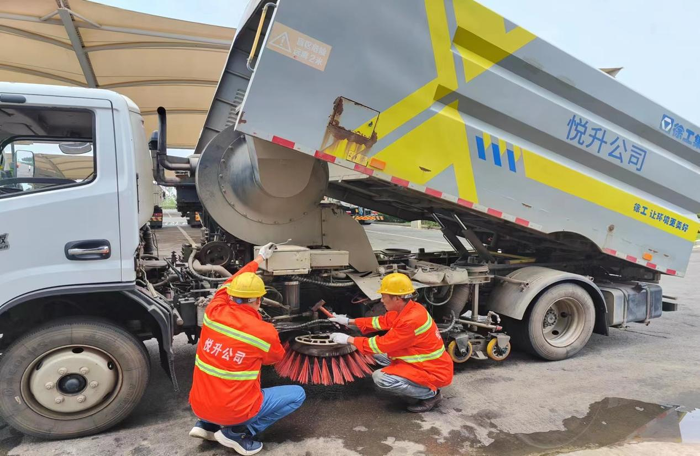 ? ? ? ?連日來,持續(xù)高溫,酷暑難耐。悅升公司車輛維修班組始終堅守崗位,他們用汗水確保公司所有作業(yè)車輛、設(shè)備設(shè)施正常運行,盡全力保障環(huán)衛(wèi)生產(chǎn)車輛的出勤率,為公司安全生產(chǎn)做好后勤保障工作。